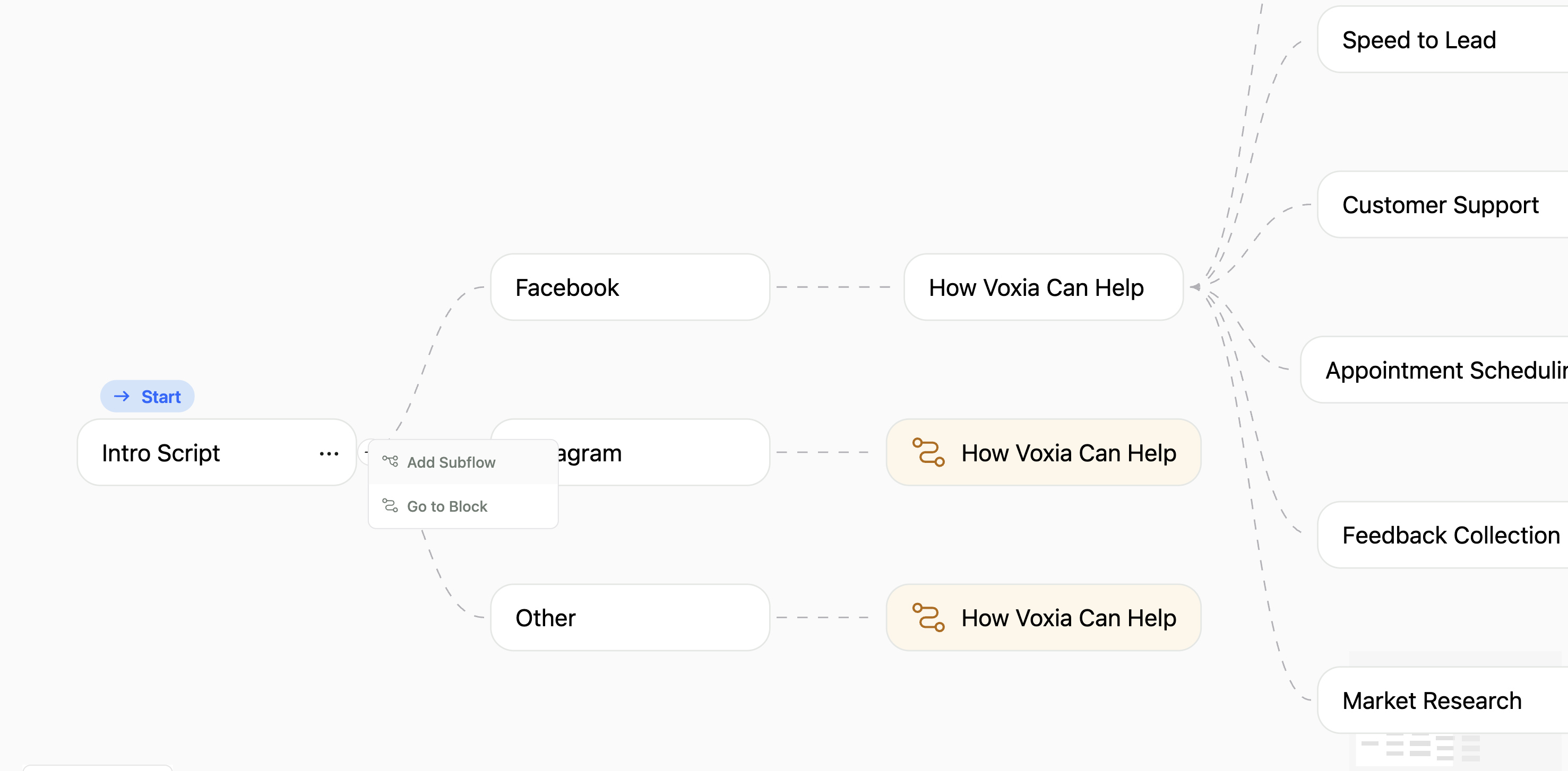 Note: You can add as many subflows as needed to accommodate various branches of the conversation.