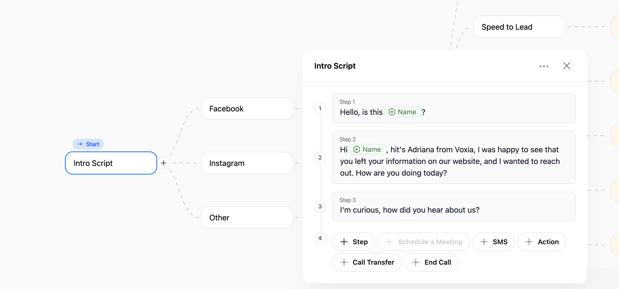 Initiate with the Intro Script- Inbound Calls: As a suggestion, you might begin your script with an introductory script node where you confirm the client’s identity by asking for their name and inquiring about their well-being. However, feel free to adjust this approach based on your specific needs.